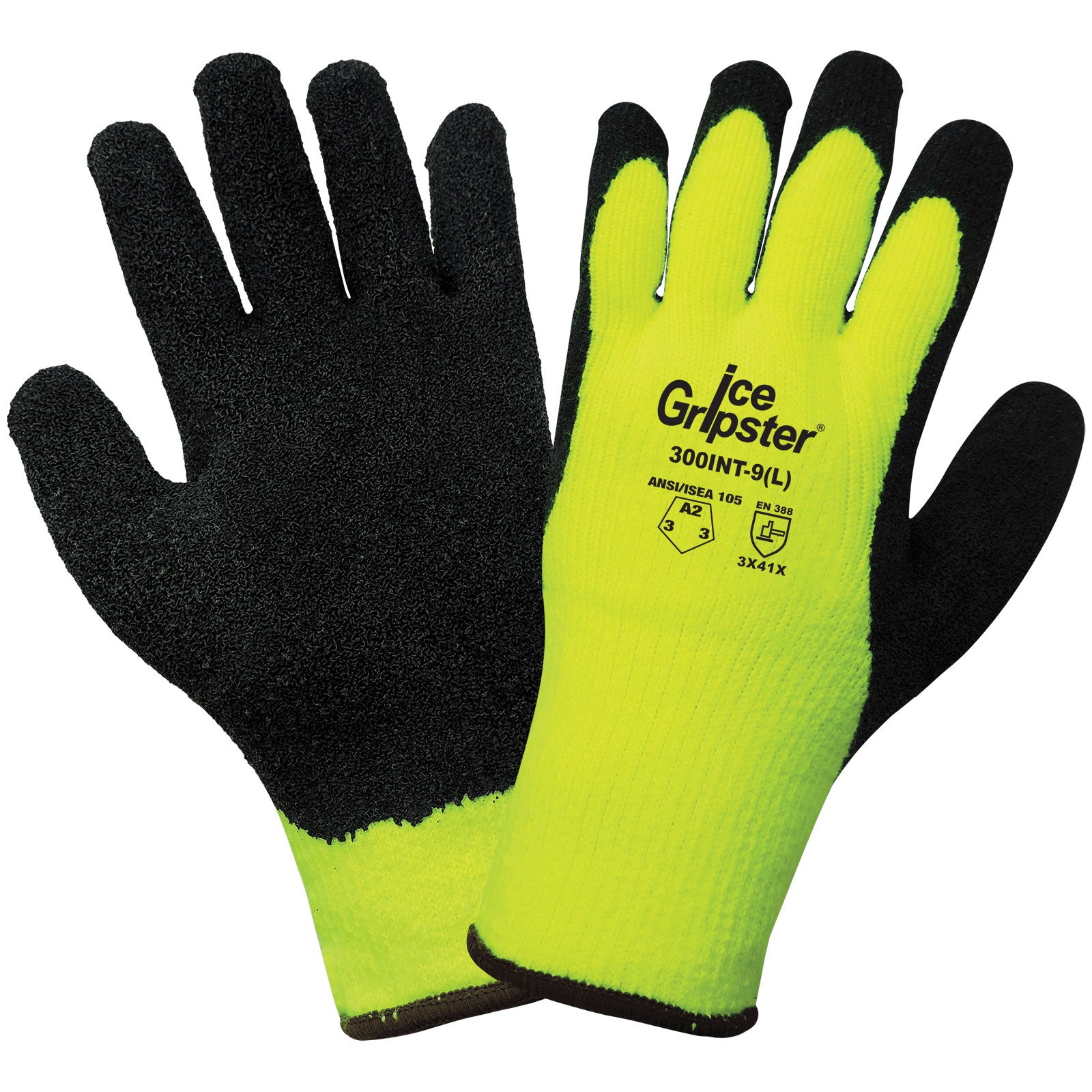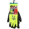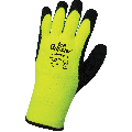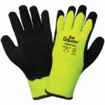 These highly visible, water-repellent gloves feature a 7-gauge high-visibility yellow/green acrylic terry cloth shell with a heavy nap, soft brushed interior. The palm of the glove is dipped with an etched rubber coating that insulates from cold and provides grip in chilly conditions. Features a knit wrist for added comfort and warmth.